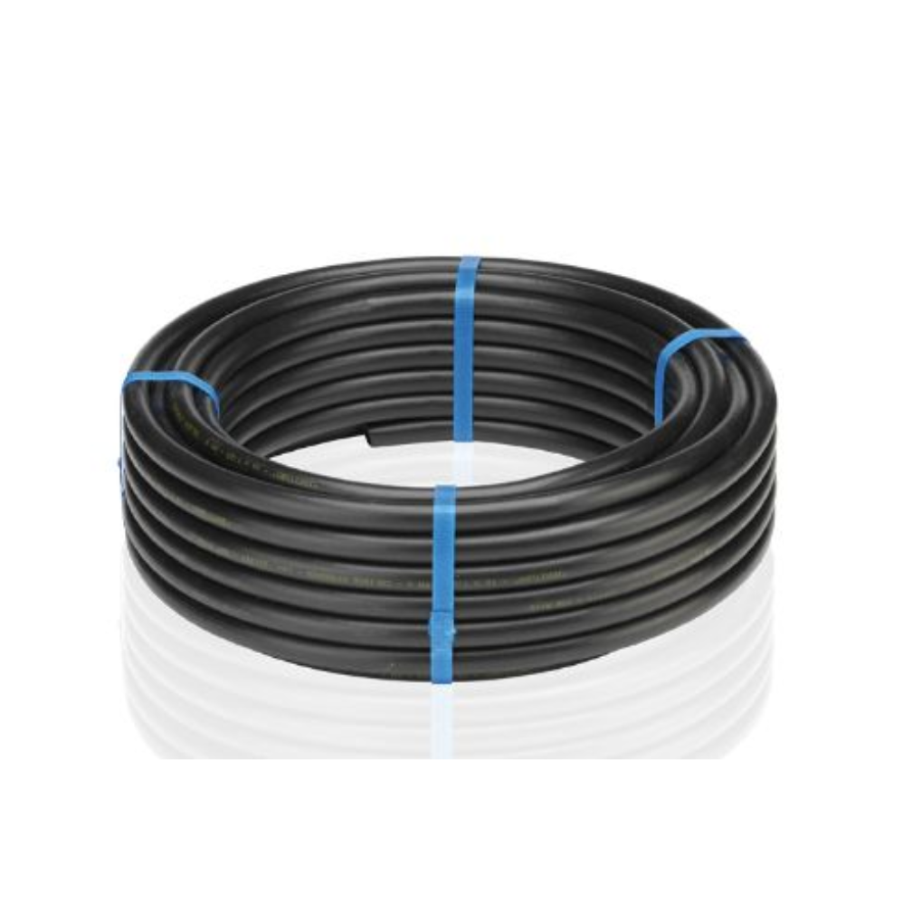 - Tubería PE BD (Polietileno de baja densidad) P-40 color negro con banda azul.