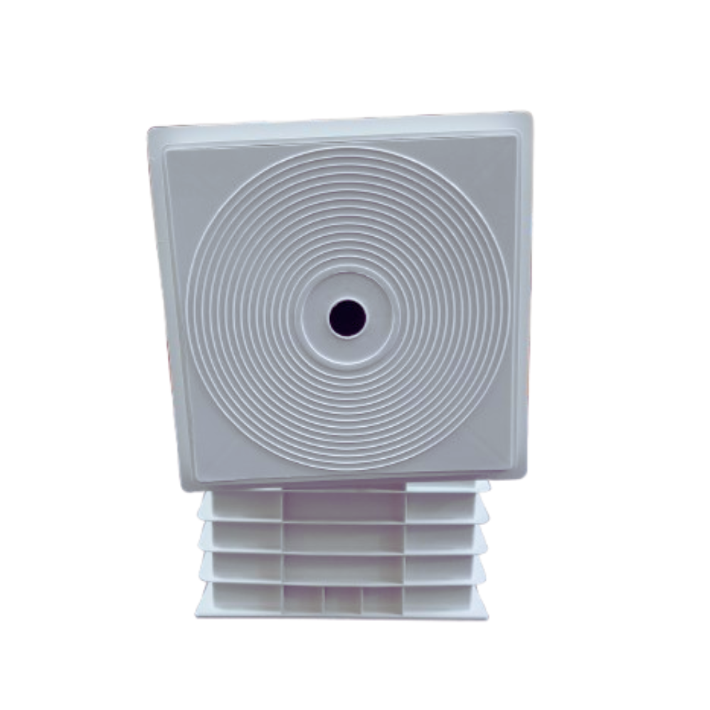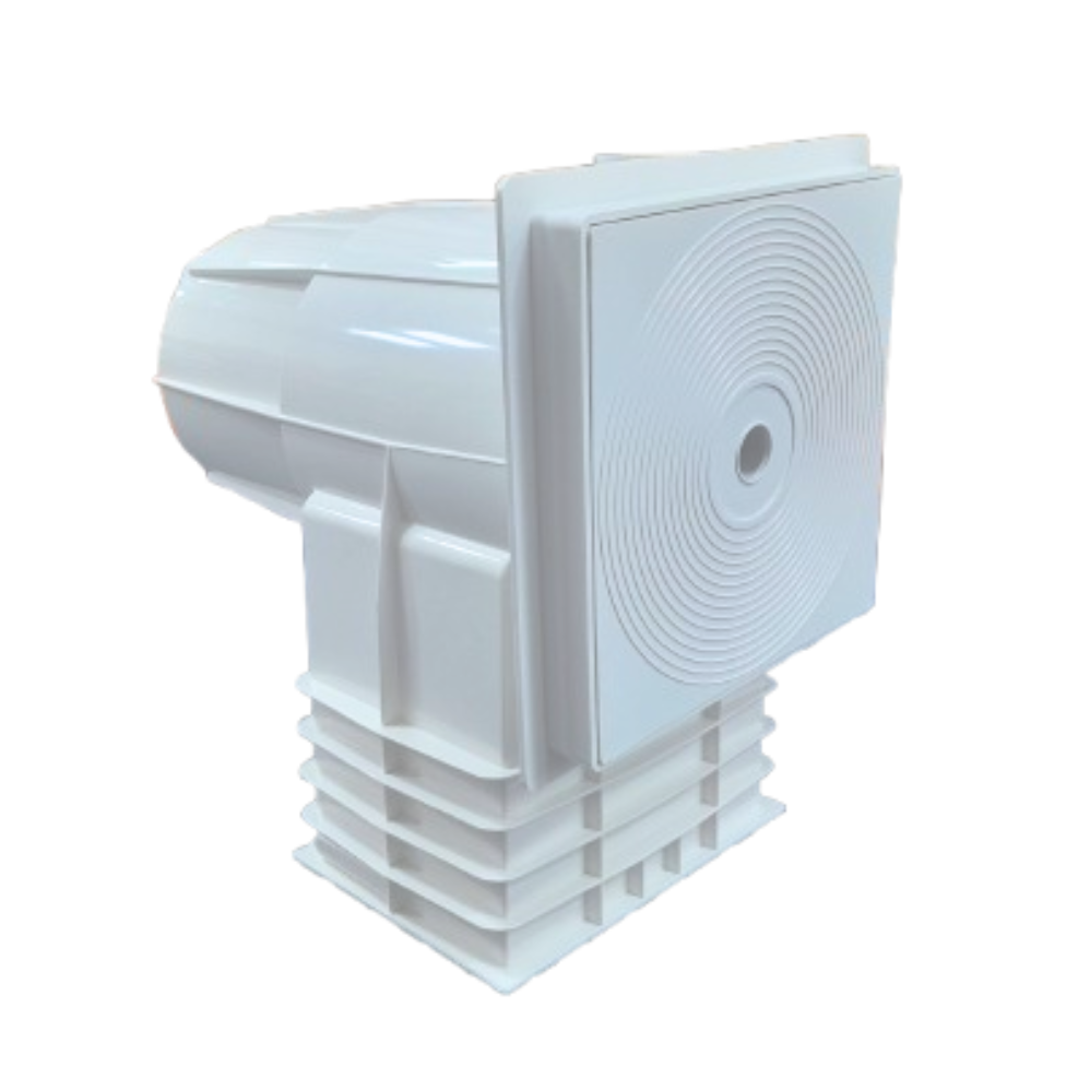 - Construído em ABS branco, com comporta flutuante e aba para regulagem de fluxo.