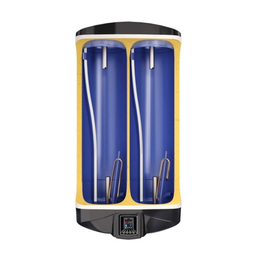 - Termo eléctrico de doble depósito, de diseño moderno y estrecho con un fondo de 27,9 cm ideal para espacios reducidos.